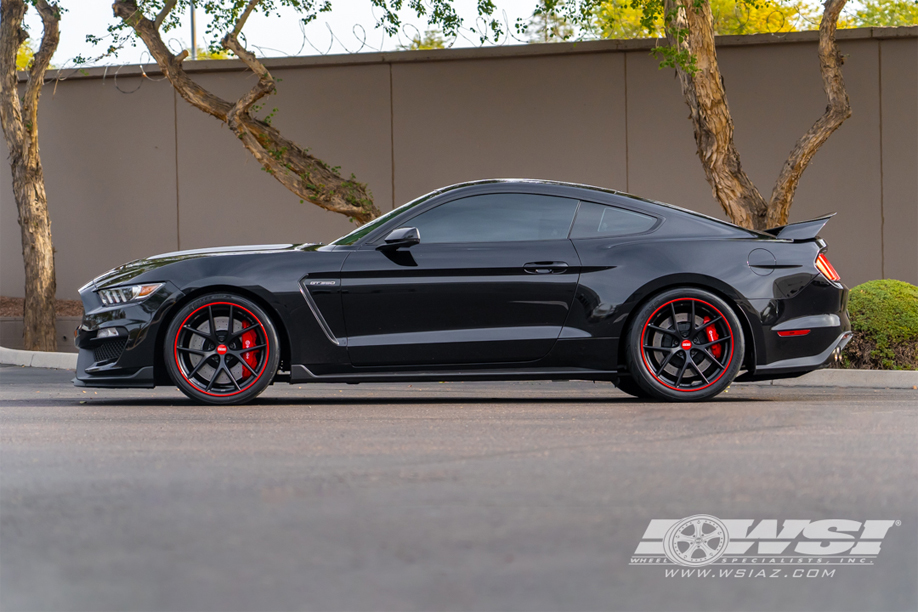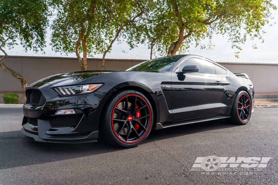 The Mustang GT350R now flaunts 20x11 ET:23.5 fronts and 20x11.5 ET:51 rears, wrapped in the performance embrace of Toyo 285/30ZR20 fronts and 315/30ZR20 rears. A touch of flair was added with the optional red rim protector, harmonizing seamlessly with the car's striking red accents.