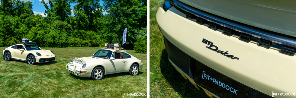 Pit+Paddock made excellent use of Porsche Warrington's grassy expanse with a rock pit, by showcasing a selection of offroad Porsche SUVs and rally cars. Among the impressive lineup were Warrington's Porsche Restoration Challenge 993 Safari and a beautiful Ivory 992 Dakar.
