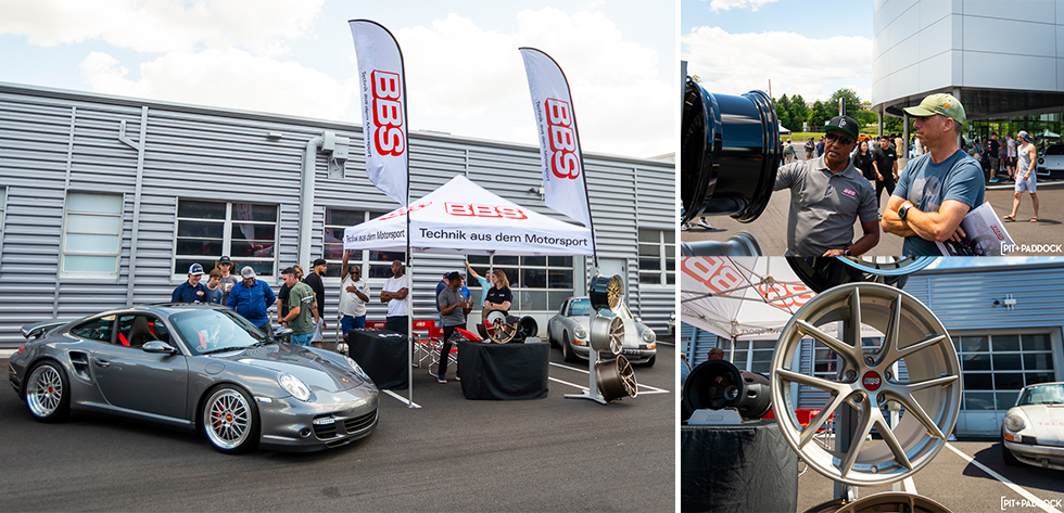 Josh Cagg's 997 Turbo, showcased at the BBS tent, featured stunning BBS LM wheels in a Diamond Silver finish. Alongside this eye-catching display, BBS presented a variety of their other iconic designs, crafted for Porsche models dating back to the Porsche 964 chassis. The exhibit highlighted BBS's enduring legacy and commitment to enhancing Porsche vehicles with precision-engineered wheels, capturing the attention and admiration of enthusiasts and attendees alike.