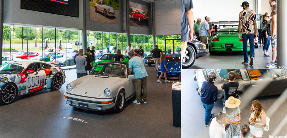Porsche Warrington provided the perfect backdrop for this spectacular event. The venue showcased an impressive array of cars, curated by Pit + Paddock, staged in various locations—from the parking lot and main showroom to the shop garages and the grassy meadows, where the dealership demonstrates the offroad capabilities of Porsche SUVs.