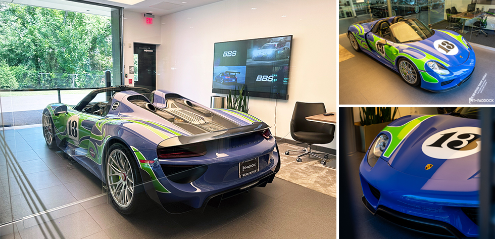 The experience began with a Basalt Black Carrera GT and a 918 Weissach parked nose-to-nose, setting the stage with sheer automotive elegance. However, the true showstopper was a purportedly one-of-one 918 Weissach in hand-painted "Hippie" livery, safely encased in Warrington’s glass delivery bay.