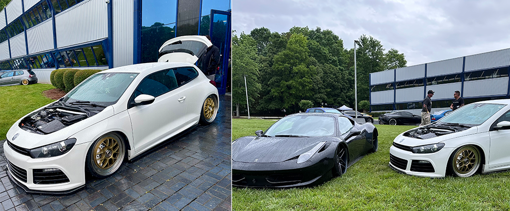 Alberto Garcia, a BBS enthusiast who drove 40 hours from Mexico, won top honors in the BBS-equipped class. His entry: a rare Recaro Edition VW Scirocco, one of only 100 produced, modified to run BBS E01 center-lock wheels via a custom hub conversion. “It was nice to see the award go to a guy as passionate about BBS as Alberto,” said one spectator who had learned of his trek to BBS Bound.
